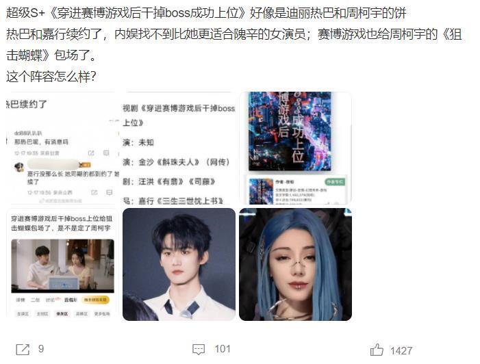前不久,网上传出消息,嘉行为让迪丽热巴签约,特意拿出诚意,准备让她出演《穿进赛博游戏后干掉boss成功上位》女主,要知道这部剧是一部S+级制作,当之无愧的好资源,根据知情人士透露,在这部剧中,迪丽热巴会搭档周柯宇,他们两人都是嘉行的。